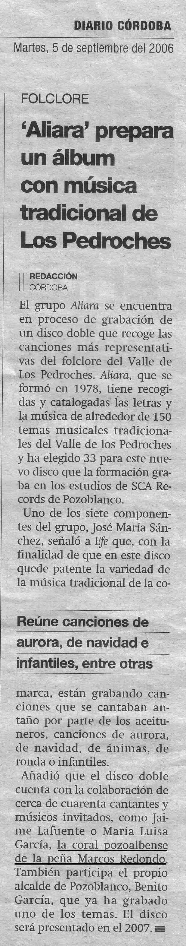 Colaboración de la Coral Marcos Redondo con el grupo Aliara. Diario Córdoba