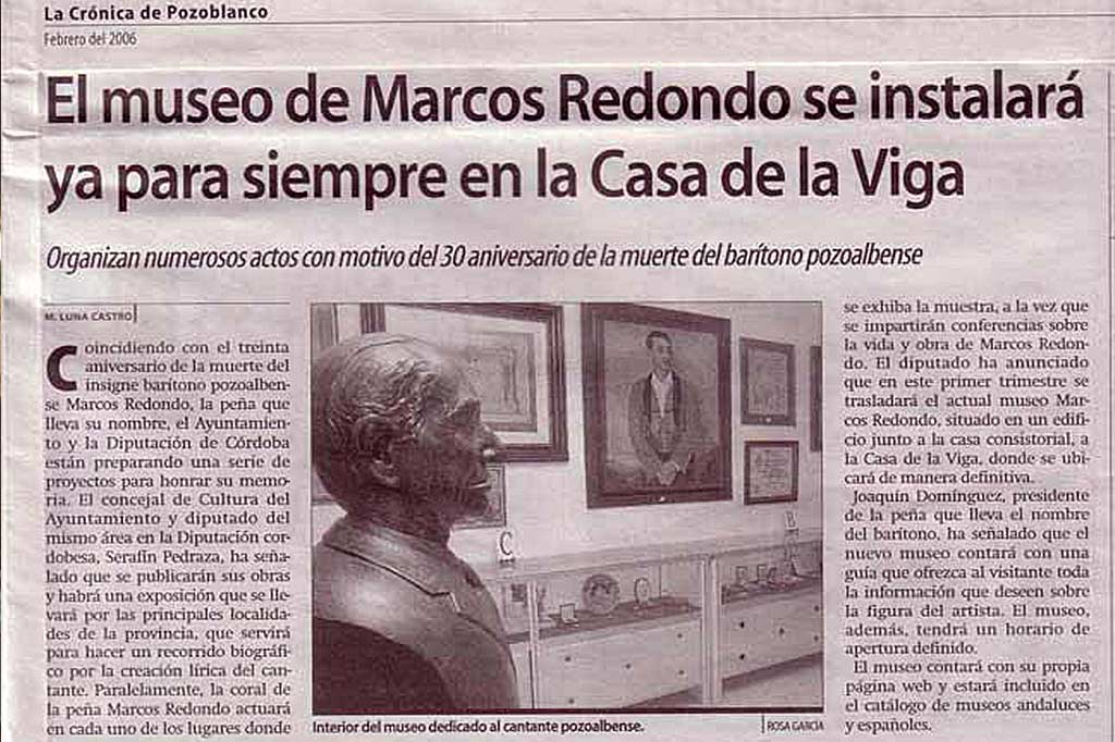 | 2006 | 22/02/2006 (miércoles): Noticia en La Crónica de Pozoblanco sobre el Museo Marcos Redondo |