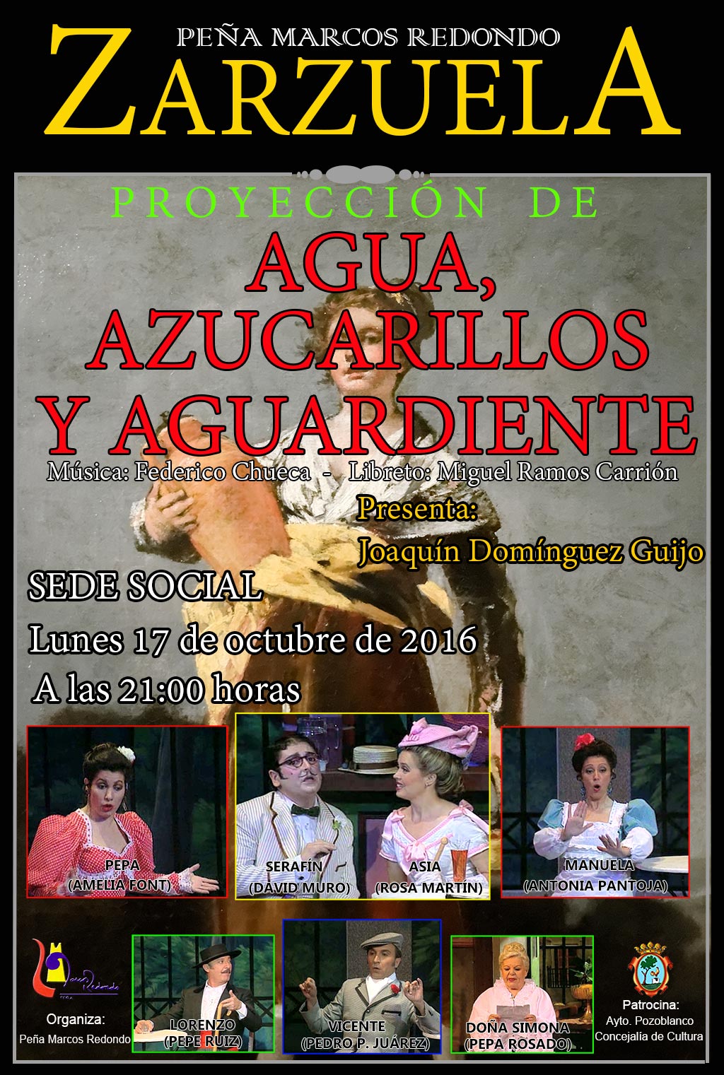 El lunes 17 de octubre tuvimos en la Sede Social una actividad de zarzuela con proyección para los socios y simpatizantes de la Peña Marcos Redondo de la zarzuela "Agua, azucarillos y aguardiente" que fue presentada por Joaquín Domínguez Guijo.