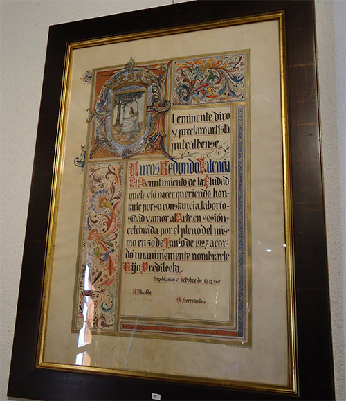 Plato entregado por la Asociación Ruperto Chapí a Marcos Redondo con motivo de nombrarle Foguerer Mayor