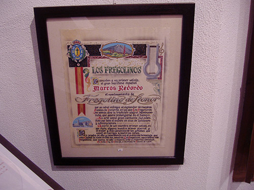 El Museo tiene tres naves donde se encuentran unas vitrinas con los objetos bajo unos arcos rebajados que las separan formando amplios pasillos. Las paredes se encuentran decoradas con multitud de cuadros que contienen diplomas, fotos, cartas, certificados, etc. Al entrar observamos un busto de Marcos Redondo y al fondo unas caricaturas suyas.