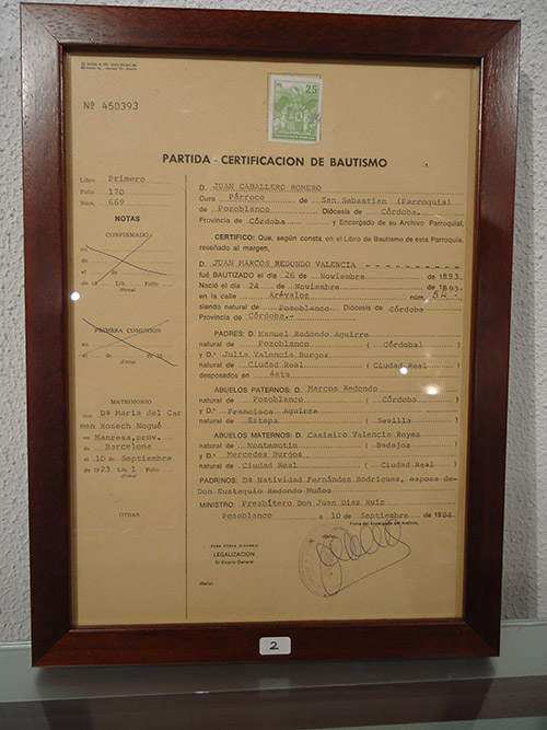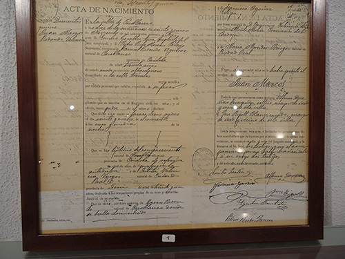 Los primeros cuadros colgados de las paredes del museo corresponden a partidas de nacimiento, de bautismo, boletines de notas, etc.